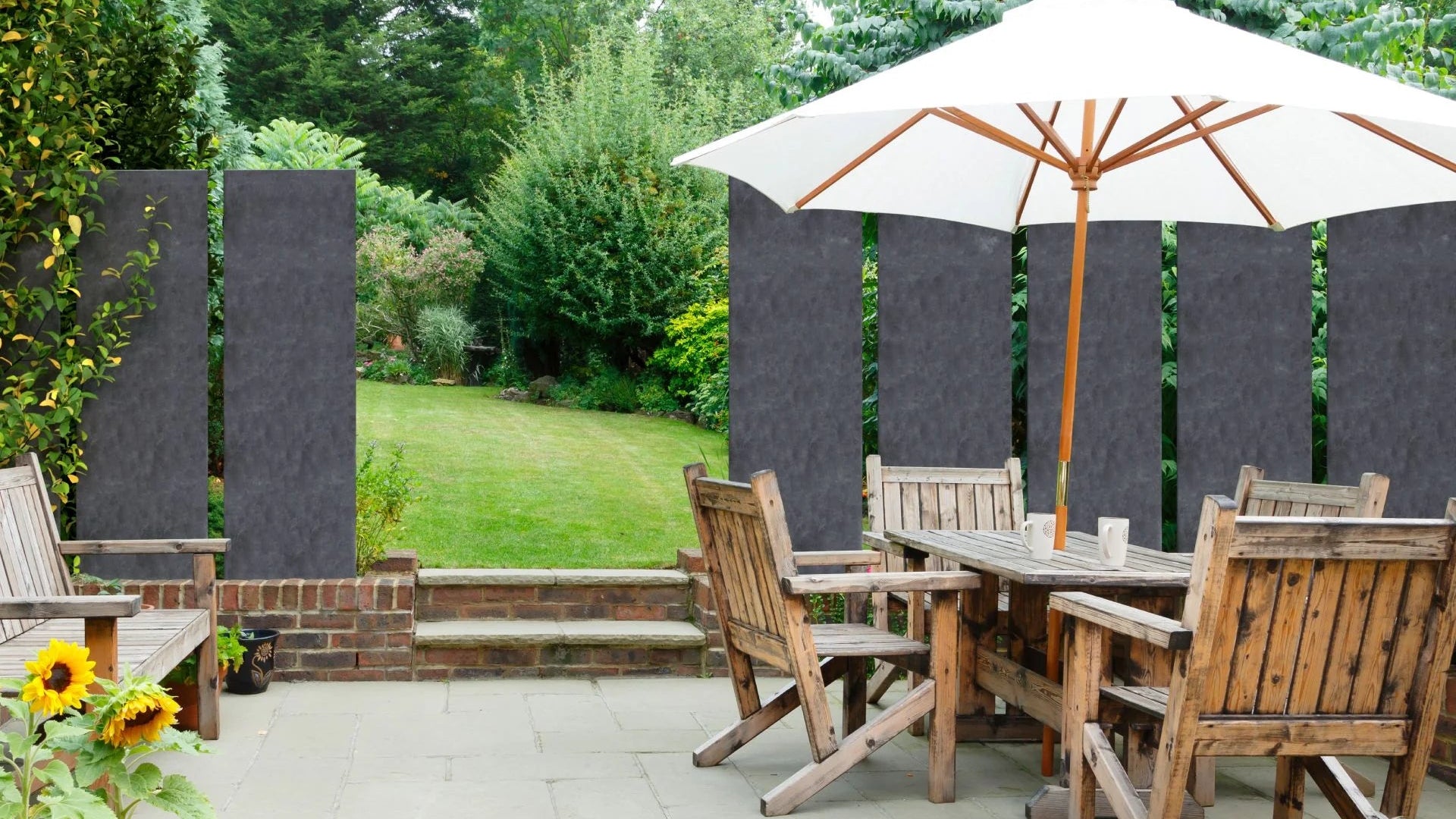 Sibirische Lärche, Schiefer, Betonoptik oder Cortenstahl – die naturgetreuen Oberflächen sind witterungsfest, pflegearm und setzen markante Akzente. Sieh dir dazu unseren Palisaden Sichtschutz Schiefer an – äußerst robust, langlebig und vollständig in Deutschland gefertigt.