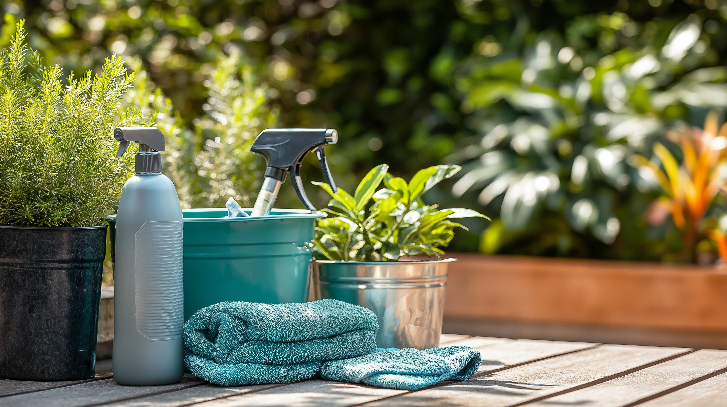 - Sprühflaschen mit Wasser und Reinigungsmittel
